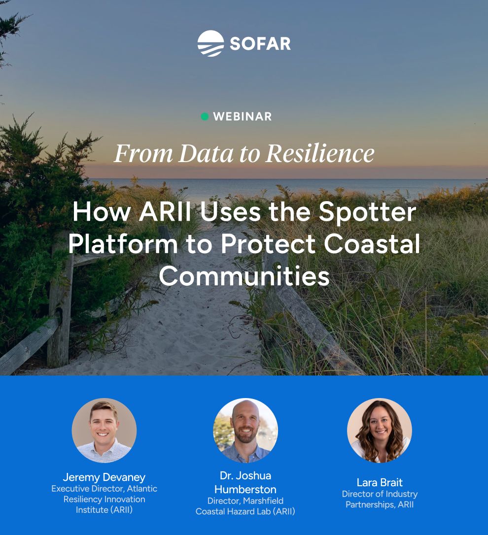 As part of the tight collaboration with ARII, Dr. Humberston will discuss the valuable role real-time, localized coastal data plays in building more resilient communities at the next Sofar Oceans Webinar on November 13th. He will share how local communities like Marshfield, MA, not only improve their unique understanding of risk factors, but also deliver real-time insight to coastal industries, including fishers, aquaculture operators, mariners, insurance, and home owners.